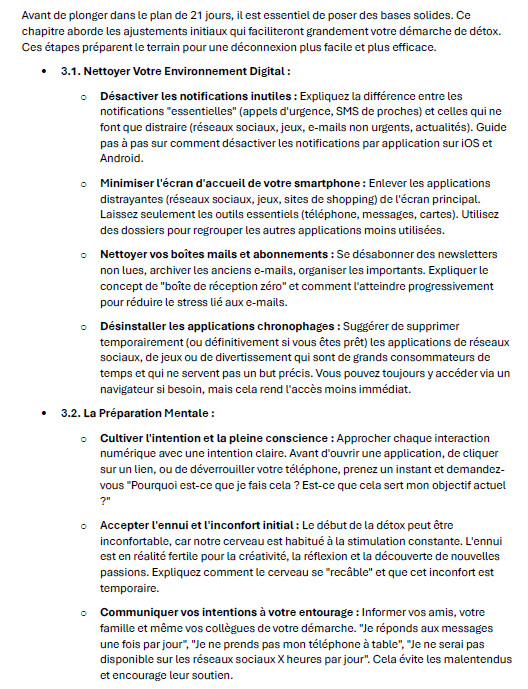 - Le Plan de 21 Jours Personnalisé : Un programme progressif et flexible, adapté à votre rythme de vie, pour réduire en douceur votre temps d'écran et reprendre le contrôle.